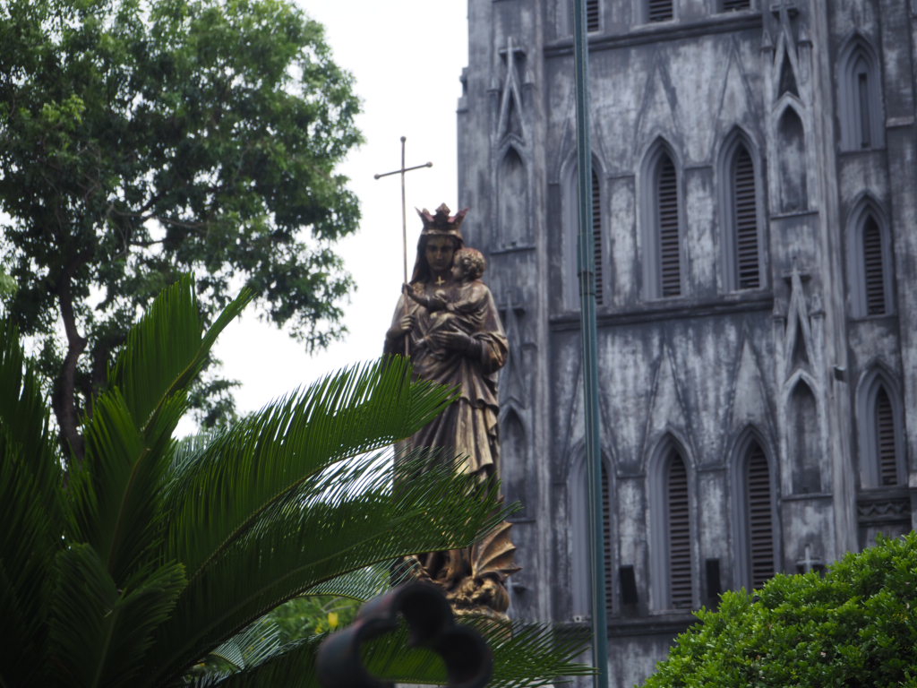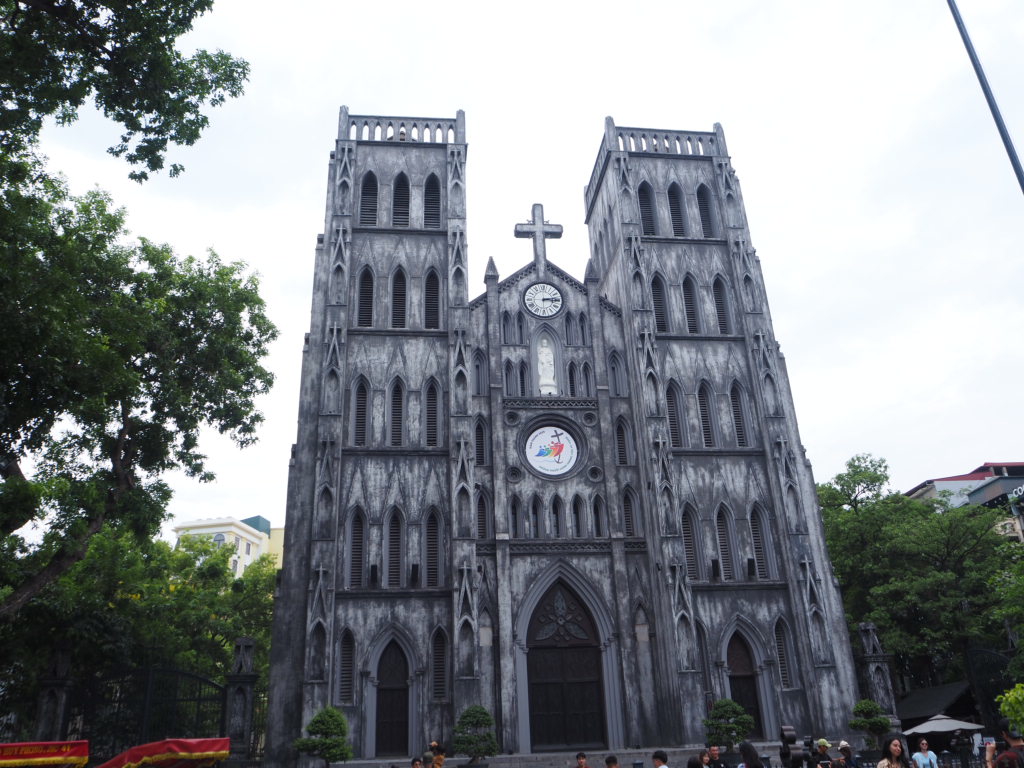 まずはハノイ大教会(St. Joseph Cathedral)へ。パリのノートルダム寺院を模範に作られたといわれる、古い教会です。