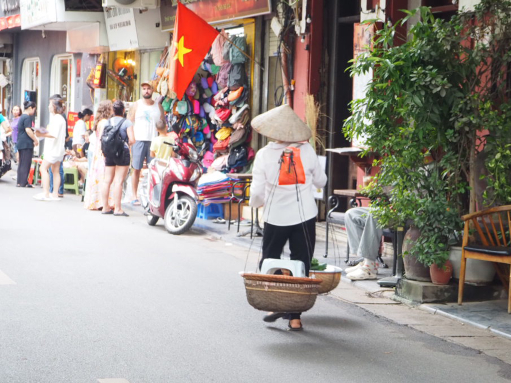 ベトナムの円錐形のかさ・ノンラーをかぶった人もあちらこちらで見かけます。