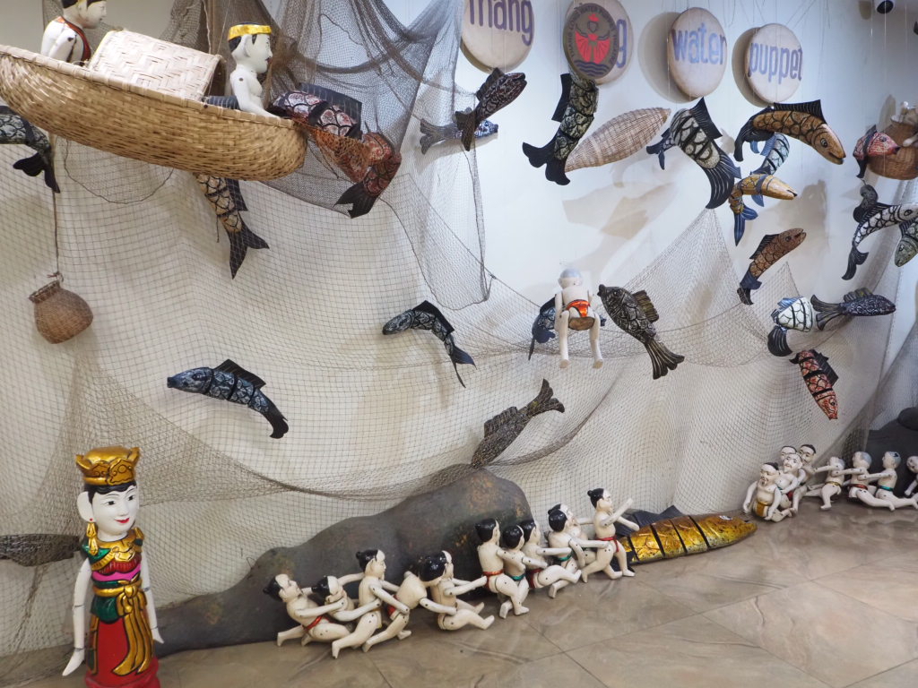 素朴な姿のユニークな人形たちが繰り広げる、のどかな農村のお話は思わず笑がこぼれる可愛らしさ。舞台のサイドでは生歌、そしてベトナム伝統楽器の生演奏。すごく綺麗な音!と思って奏者を見たら、小さなお猪口のような器を2つ、器用に鳴らしていてびっくりしました。
